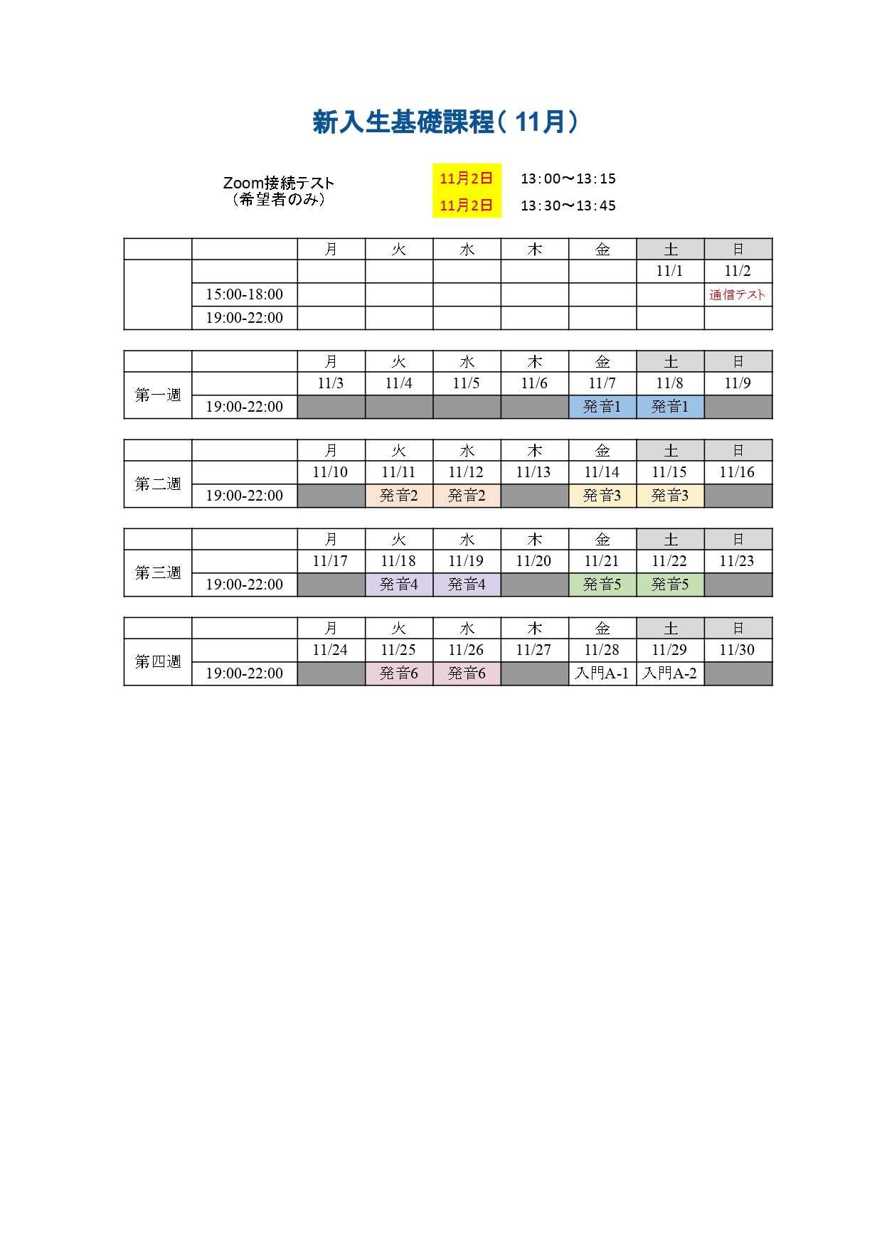 下記の専用フォームのリンクをクリックしてご入力ください。 初月の授業予定は