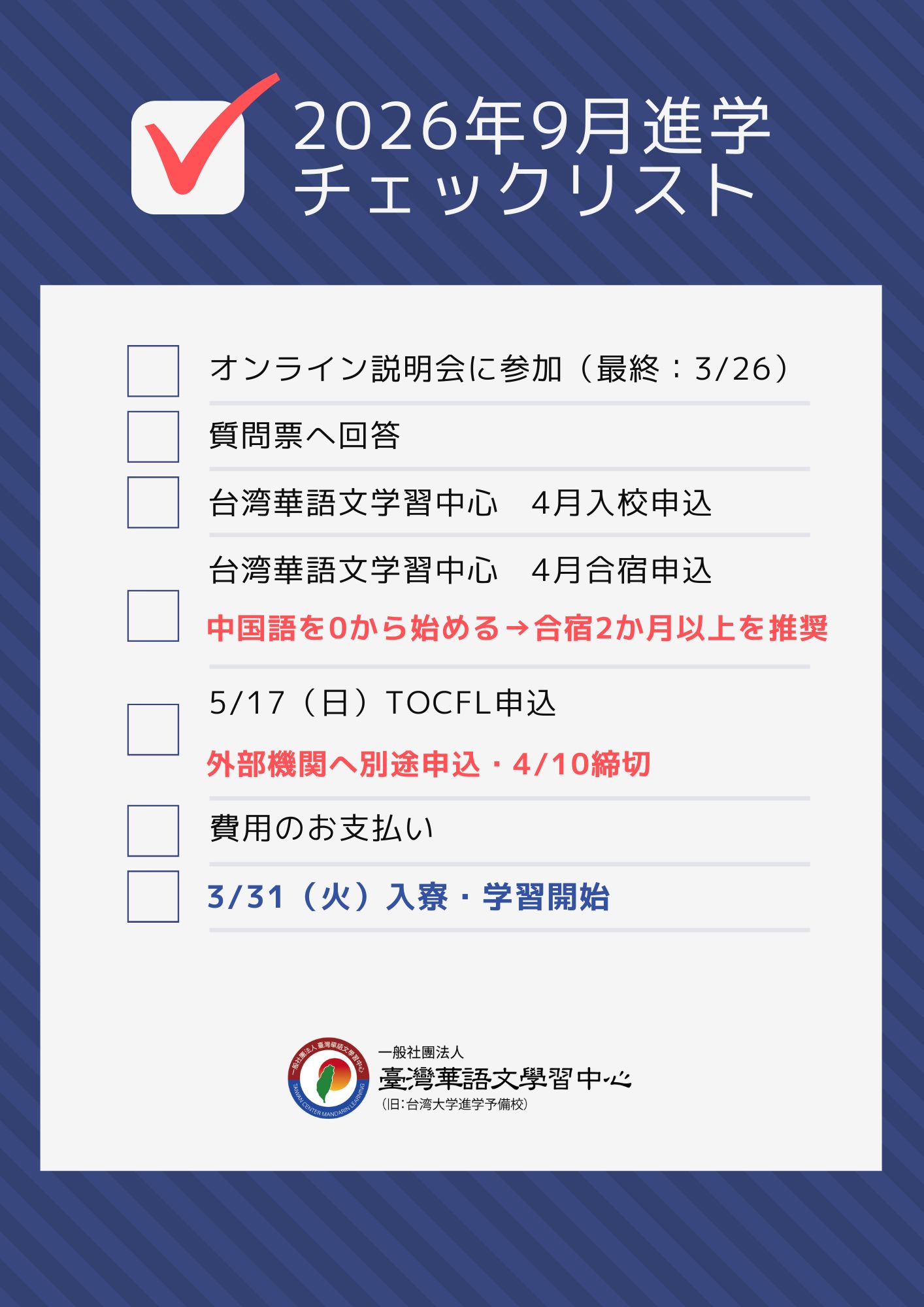 2026年9月進学チェックリスト